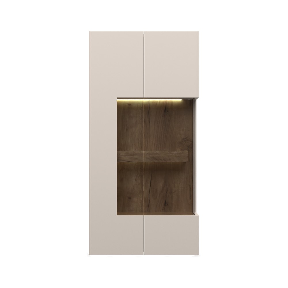 Počastite se modernom SKY 45 visećom komodom koja ima dvoja staklena vrata iza kojih se nalazi polica koja služi kao spremište za knjige, suvenire, vaze, ukrasno cvijeće i mnoge druge predmete. Komoda također nudi led rasvjetu koja će osvijetliti vaš prostor i dodati mu toplinu.