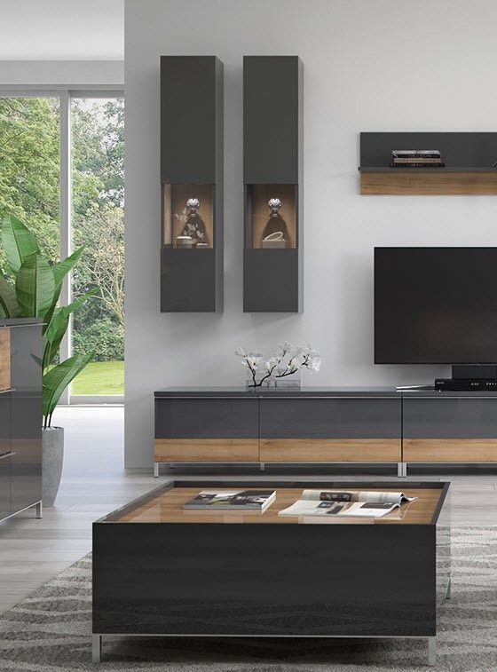 Vitrina KALLA ONYX je dio kolekcije dnevnih boravka KALLA ONYX, koja sadrži brojne različite elemente, koji vam nude obilo prostora za pohranu odjeće i modnih dodataka, zbog čega će vaša spavaća soba uvijek izgledati odlično. Dnevni boravak možete naručiti i po elementima i tako ga maksimalno prilagoditi vašim željama i potrebama!