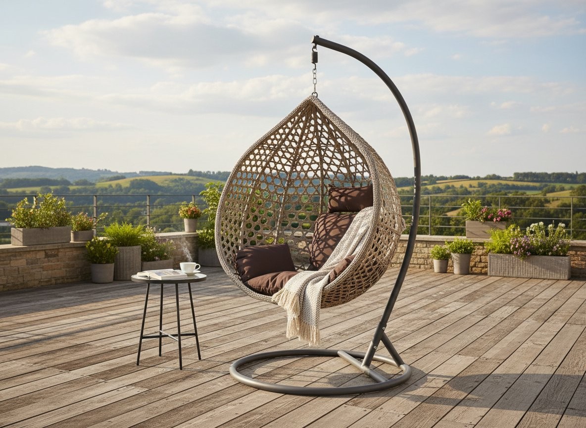 Viseća fotelja Borin L (siva) stvara udoban kutak za odmor na vrtu, terasi, balkonu ili u unutarnjem prostoru. Boja je siva.