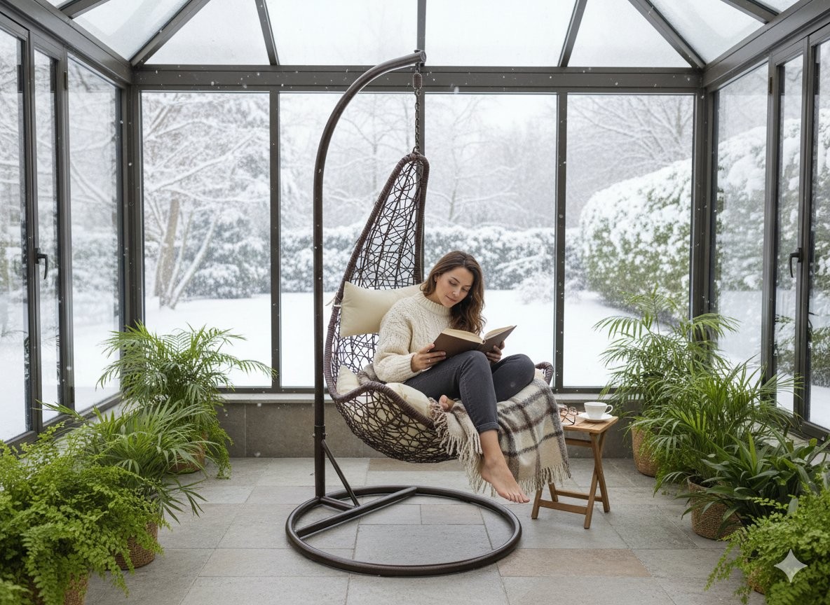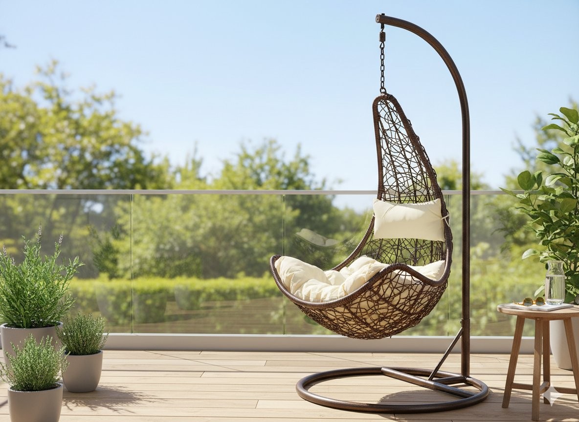 U izradi su korišteni tehnoratan i čelik. Visina okvira: 195 cm. Materijal je otporan na UV zrake. Priloženi jastuk doprinosi udobnijem sjedenju.