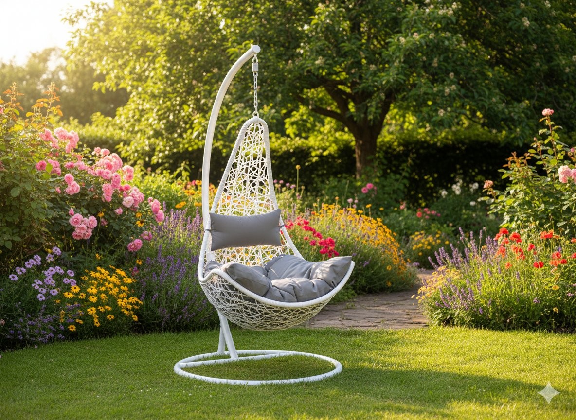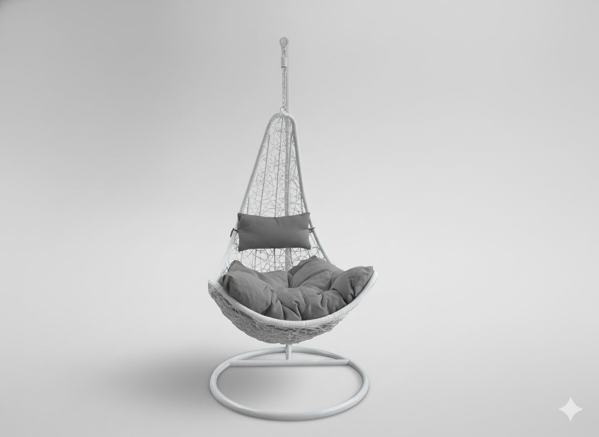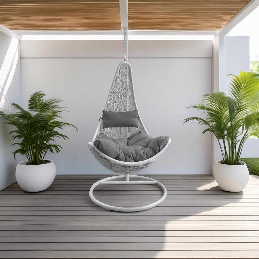 Viseća fotelja Miran S (bijela/siva) stvara udoban kutak za odmor na vrtu, terasi, balkonu ili u unutarnjem prostoru. Kombinacija boja je bijela / siva.