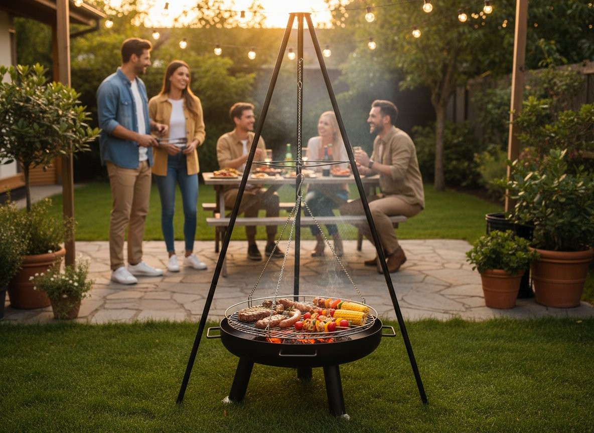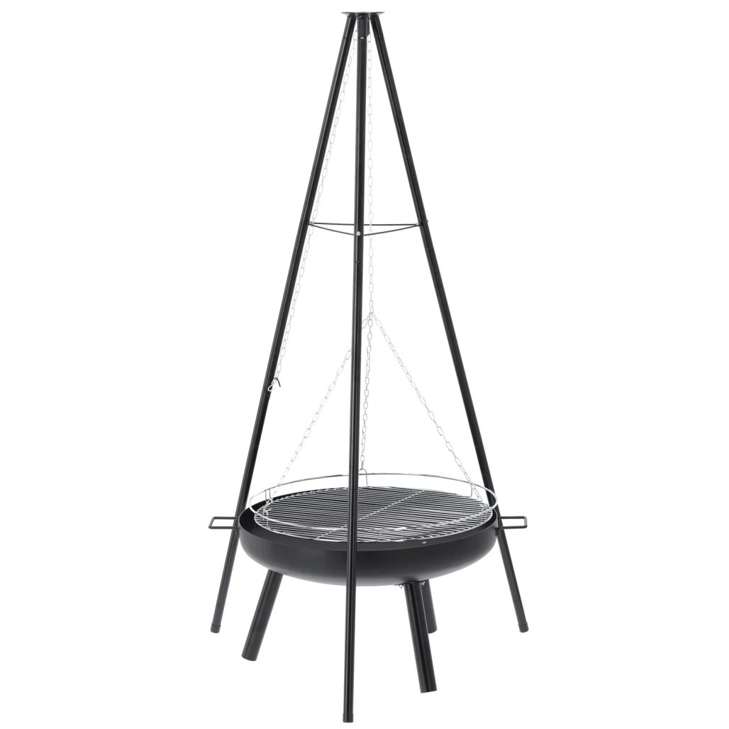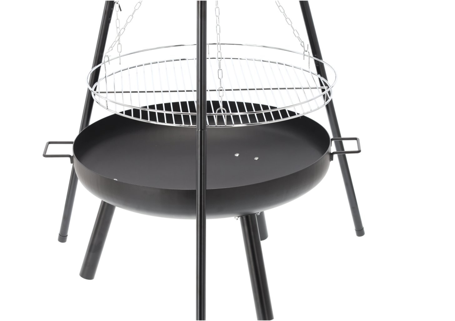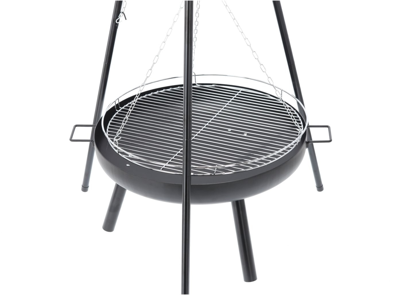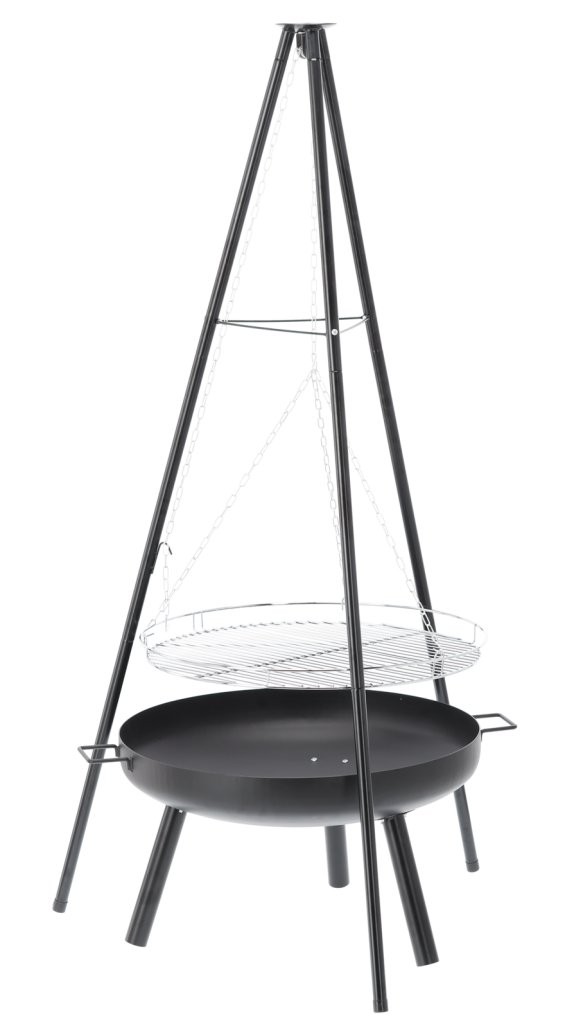Viseći roštilj Trinož 64,5 x 64,5 x 150 cm je nastavljiv viseči žar na trinožniku za pripravo hrane nad ognjem. Regulacija višine rešetke omogoča lakše prilagajanje intenzivnosti pečenja, trinožna zasnova pa stabilno postavitev.