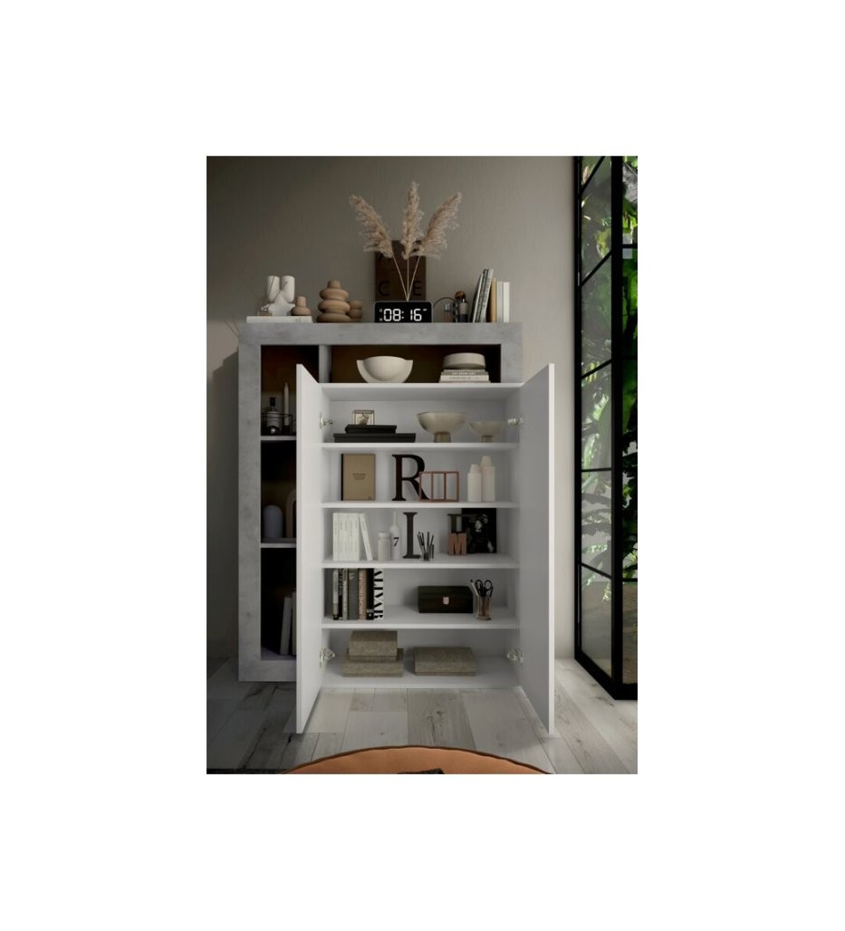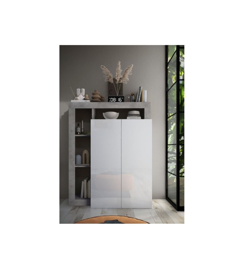 Višenamjenski ormarić za cipele HAMBURG 409030-44CE savršeno je rješenje za organizaciju vašeg doma. Svojim modernim dizajnom u kombinaciji bijelog visokog sjaja i betonskog izgleda unosi eleganciju i funkcionalnost u svaki prostor. Dvokrilna konstrukcija nudi dovoljno prostora za pohranu cipela ili drugih predmeta, što ga čini svestranim komadom namještaja.