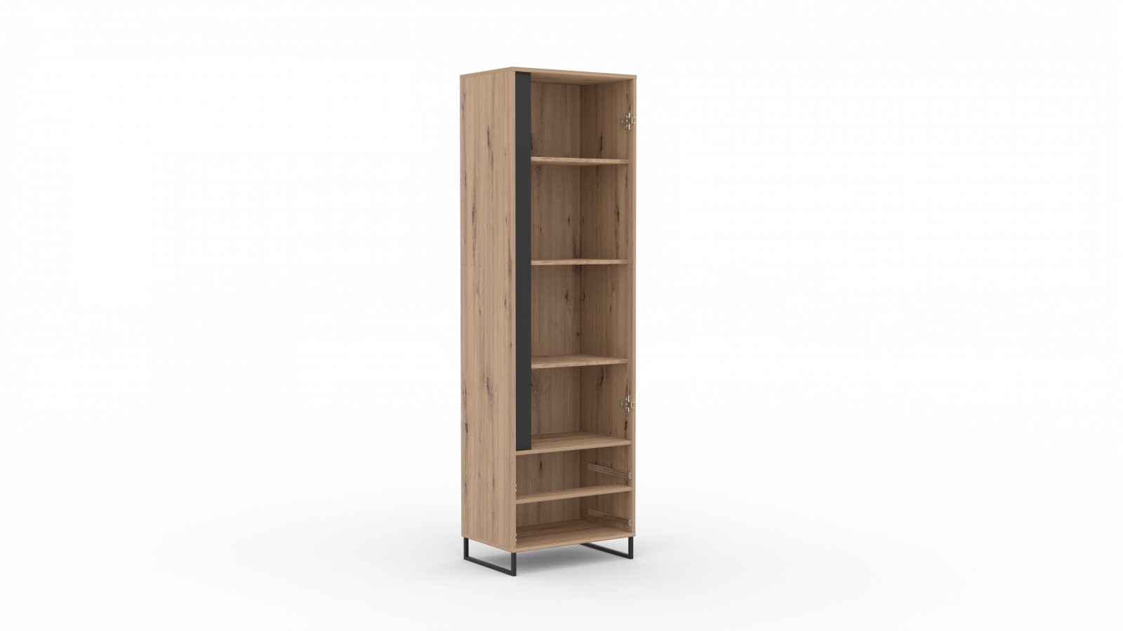 Visoka vitrina ARIA je elegantno i funkcionalno rješenje za suvremene domove. Sa svojim sofisticiranim izgledom u kombinaciji artisan hrasta i crne boje, unijet će stil i praktičnost u svaki prostor.