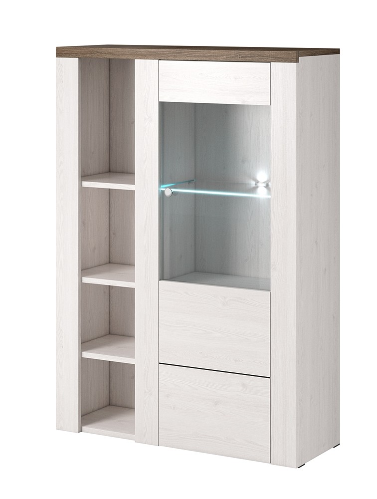 Visoka vitrina LARONA dostupna je u kombinaciji ariša i sonoma tartufa koja se savršeno uklapa u svaki dnevni boravak. Visoka vitrina sadrži staklena vrata u koja možete pohraniti omiljene stvari koje će uvijek biti na sigurnom, ali vidljivom mjestu. Rasvjeta nije uključena u cijenu proizvoda.