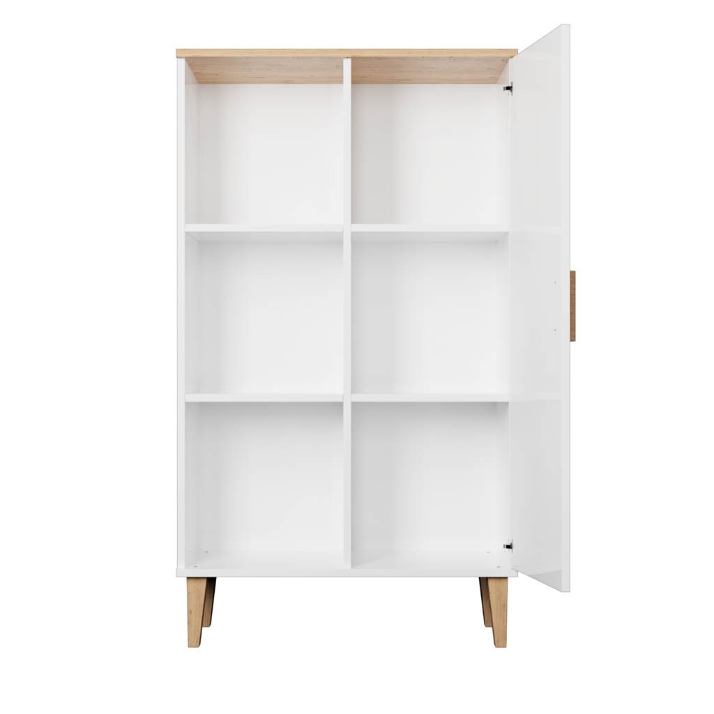 Prekrasna vitrina DENVER prikladna je za ljude koji žele svježinu i moderan stil u svom dnevnom boravku. Vitrina sadrži četiri police na koje možete spremiti knjige, časopise, suvenire ili društvene igre. Vitrina je dostupna u bijeloj boji.