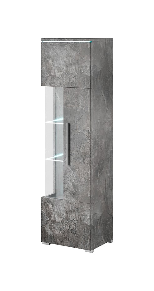 Vitrina je dostupna u boji škriljavca koja će modernizirati Vaš prostor. Vitrina INDIA sadrži puno prostora za pohranu svih stvari koje želite da budu vidljive pri ulasku u dnevni boravak. Unutra možete pohraniti knjige, čaše, vaze i slike za uspomenu.