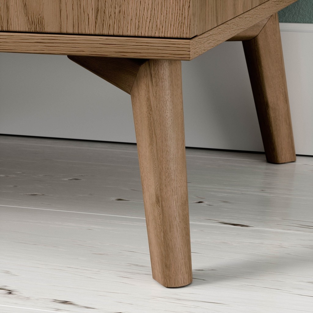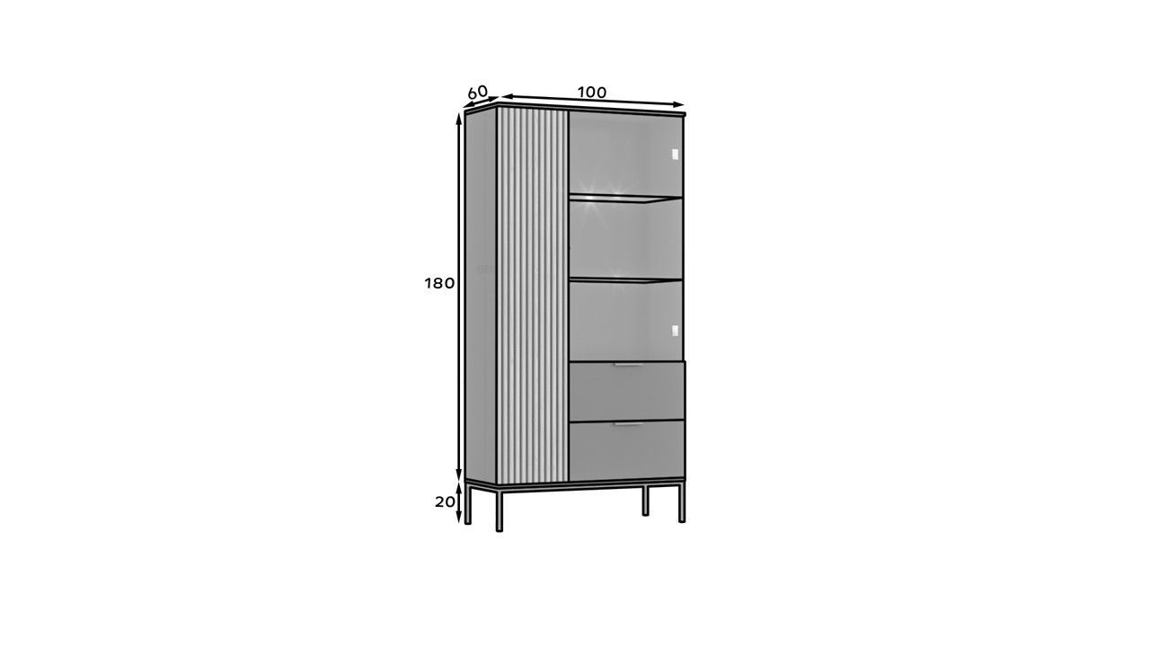 Vitrina Entsian dizajnersko je rješenje koje savršeno kombinira funkcionalnost s estetikom. Vitrina ima dvije ladice i dvoja vrata, od kojih su jedna staklena, što vam omogućuje da na staklenu policu postavite suvenire i slike koje želite da uvijek budu vidljive. Led rasvjeta je uključena u cijenu.Vitrina ima plastične noge.