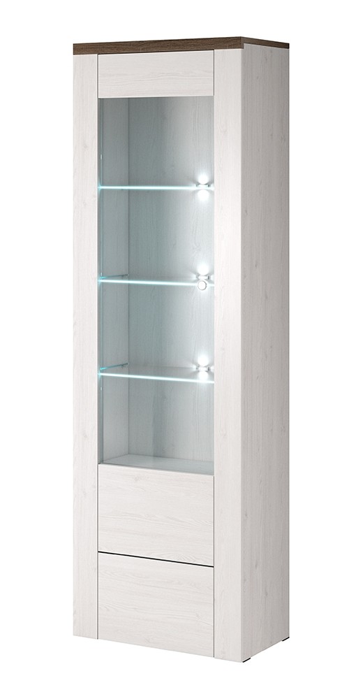 Vitrina LARONA modernog je izgleda i sadrži vratašca s puno prostora za odlaganje društvenih igara, knjiga, slika, suvenira i ostalih stvari koje su vam prirasle srcu. Vitrina je dostupna u kombinaciji ariša i sonoma tartufa. Rasvjeta nije uključena u cijenu proizvoda.