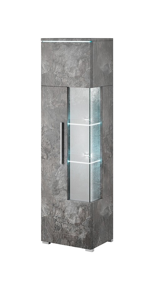 Vitrina INDIA sadrži puno prostora za pohranu svih stvari koje želite da budu vidljive pri ulasku u dnevni boravak. Unutra možete pohraniti knjige, čaše, vaze i slike za uspomenu. Vitrina je dostupna u boji škriljavca koja će unijeti dašak modernog u vaš prostor.