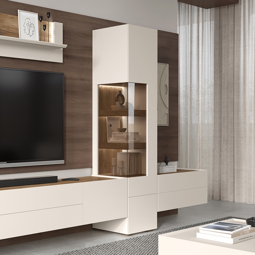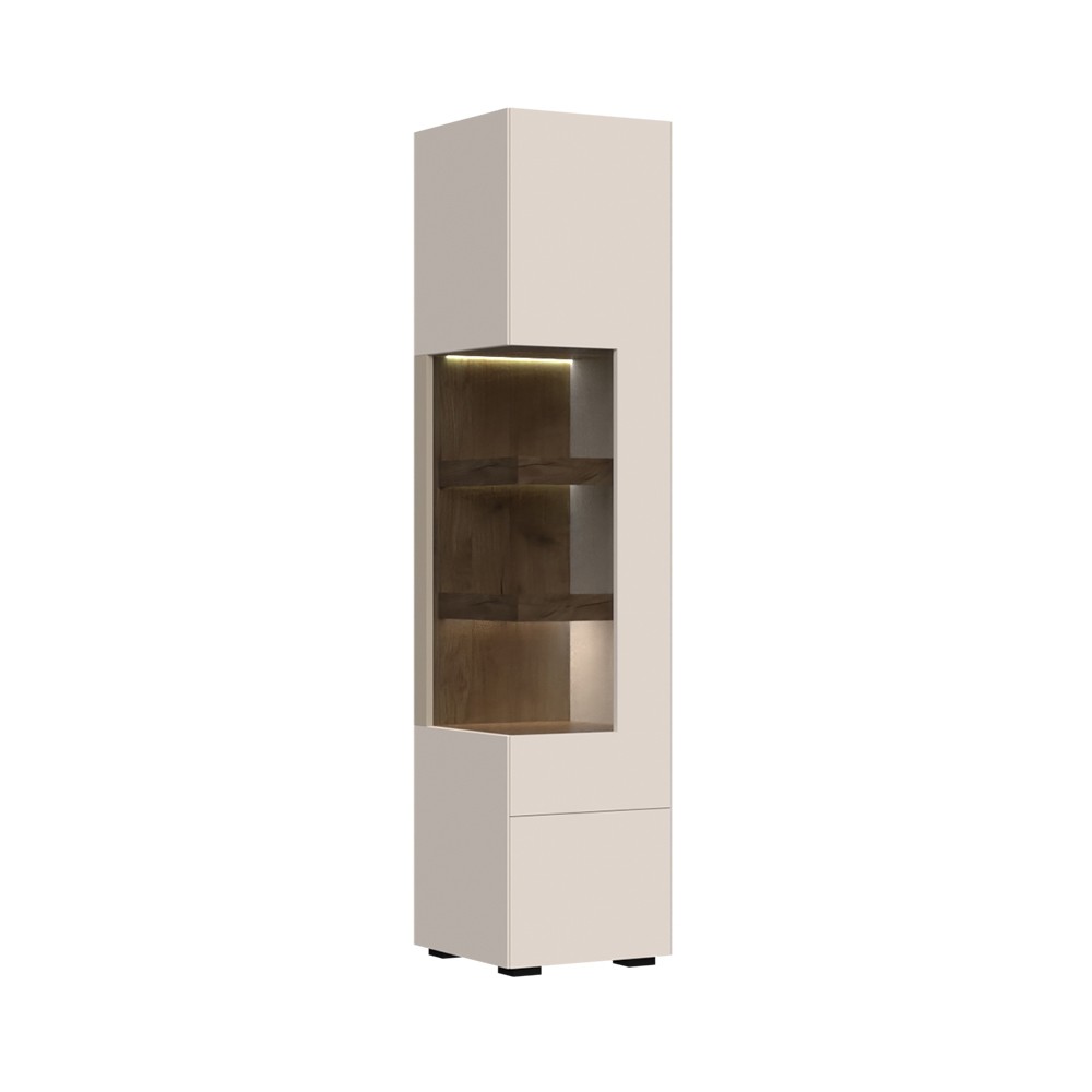 Želite li unijeti eleganciju i moderan izgled u svoj dnevni boravak? Pa, to možete učiniti s vitrinom SKY 45, koja ima stakleni središnji dio, a u nju možete staviti suvenire, slike i druge predmete koje biste željeli imati na vidljivom mjestu. Povrh toga, ima i rasvjetu koja će dodati poseban šarm u večernjim satima.