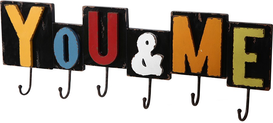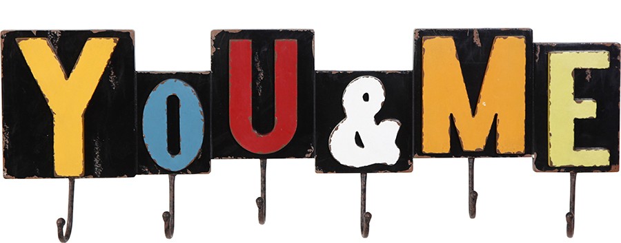 Vješalica YOU&ME je zidna vješalica s natpisom "you and me". Opremljen je sa 6 metalnim kukama. Ta duhovita i zanimljiva vješalica je priručno dopunjenje sa svakom domaćinstvu. Na praktične kuke ćete moči objesiti svoje stvari i predsoblje će biti uvijek uredno. Najveća opterećenost je 8 kg.