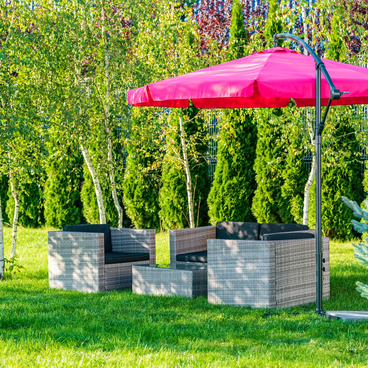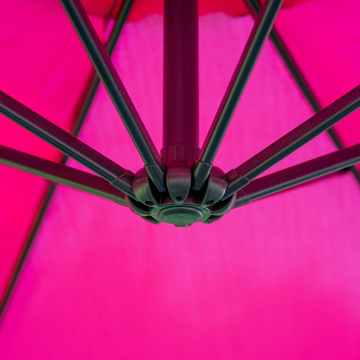 VRTNI SUNCOBRAN NIRVANA pogodan je za vrt ili terasu. Suncobran je vrlo jednostavan za korištenje, jer koristite istu ručku za otvaranje i zatvaranje, koju navijate prilikom otvaranja ili zatvaranja. Suncobran je siguran jer ima metalni okvir, a poliester na vrhu je onaj koji vam daje hlad u vrućim ljetnim danima. Dostupan u ružičastoj boji.