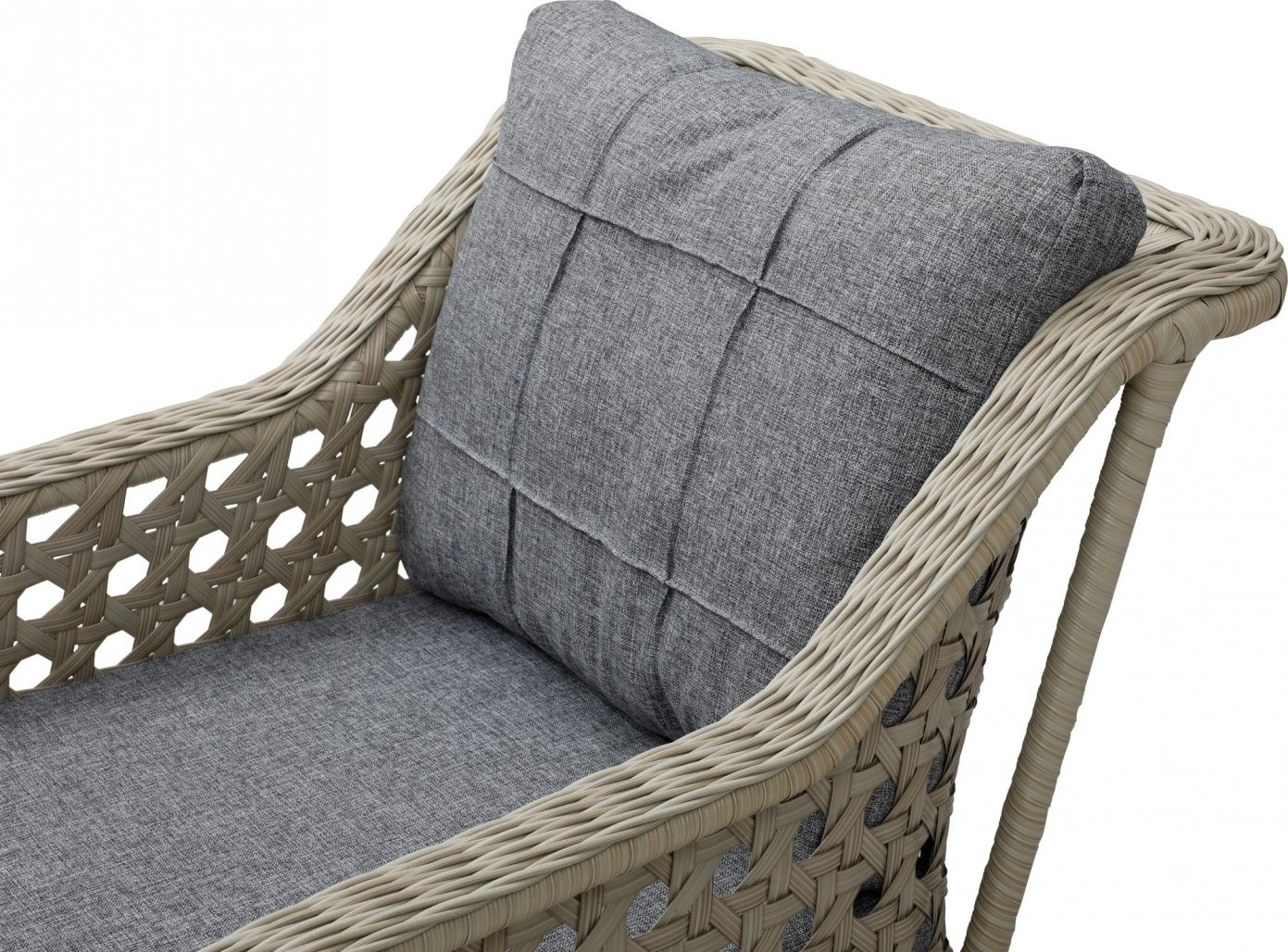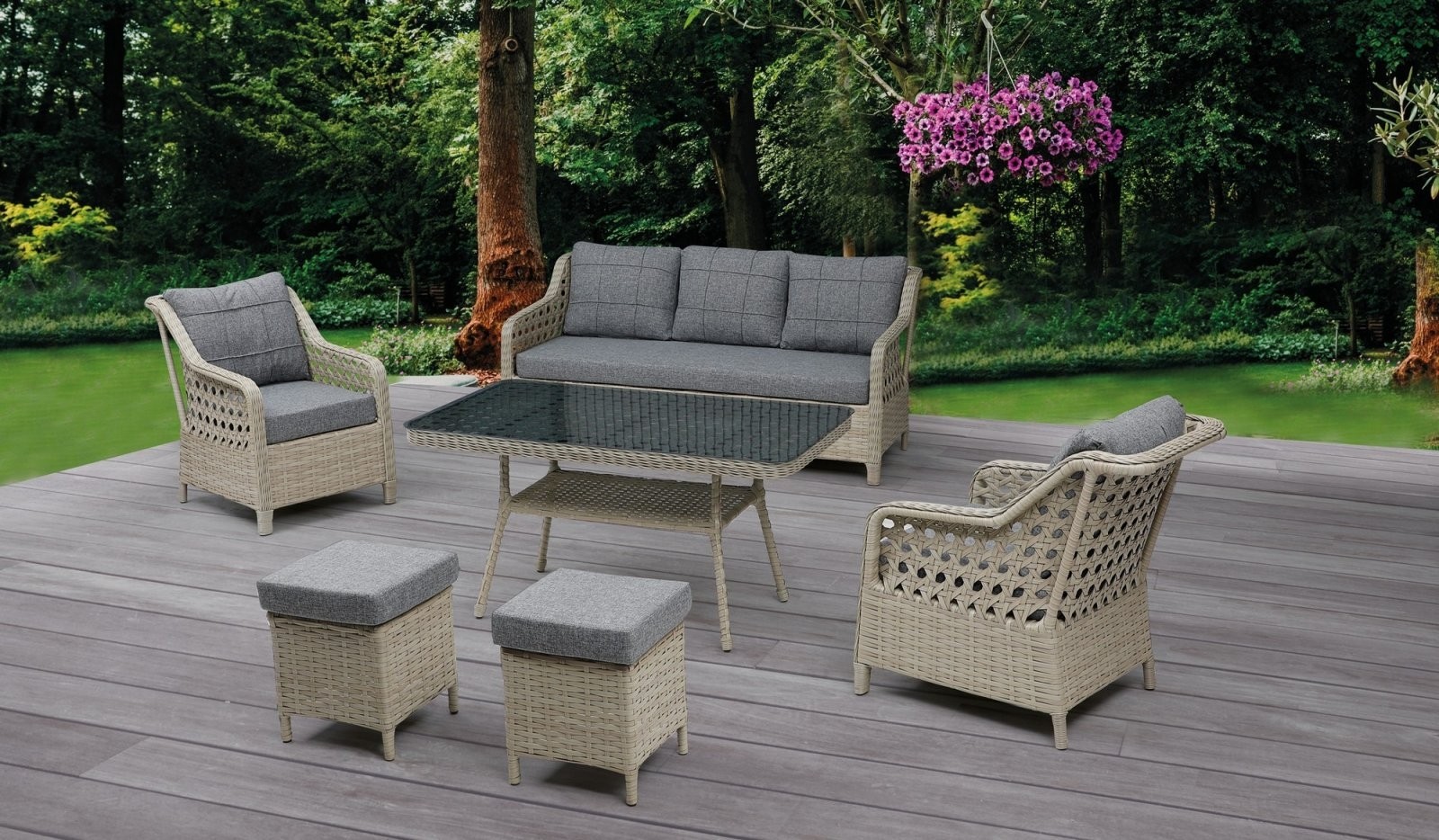 Uživajte u prekrasnim trenucima na otvorenom s vrtnom garniturom Ramonda. Ova garnitura idealna je za opuštanje i druženje na vrtu, terasi ili verandi. Izrađena je od visokokvalitetnog ratana s čvrstim aluminijskim okvirom, što osigurava otpornost na vremenske uvjete i dug životni vijek. Prednost ovog proizvoda je njegova svestranost koja vam omogućuje lako prilagođavanje vašem vanjskom prostoru.