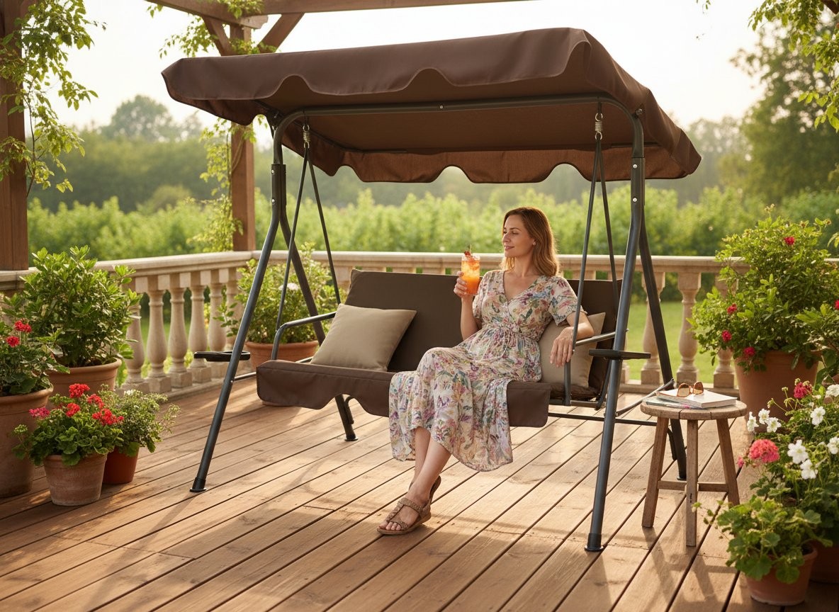 Vrtna gugalnica A-Type s držačima za piće (smeđa/bež) je zasnovana za sproščeno zibanje i prijetno preživljanje časa na prostem. Smeđa boja upotpunjuje topao i prirodan izgled. Pri izdelavi su uporabljeni materijali, kao su čelik, oxford i poliester.