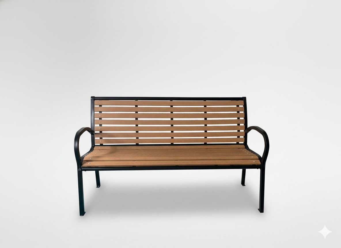 Vrtna klupa Meda (125 cm, smeđa) je dekorativna vrtna klupa s naslonom, namijenjena opuštanju na vrtu, terasi ili ob vodnih okrasih. Rjava barva i letvice s imitacijom drva prispevajo k toplom izgledu, ukrasni naslon pa doda izrazit poudarek.