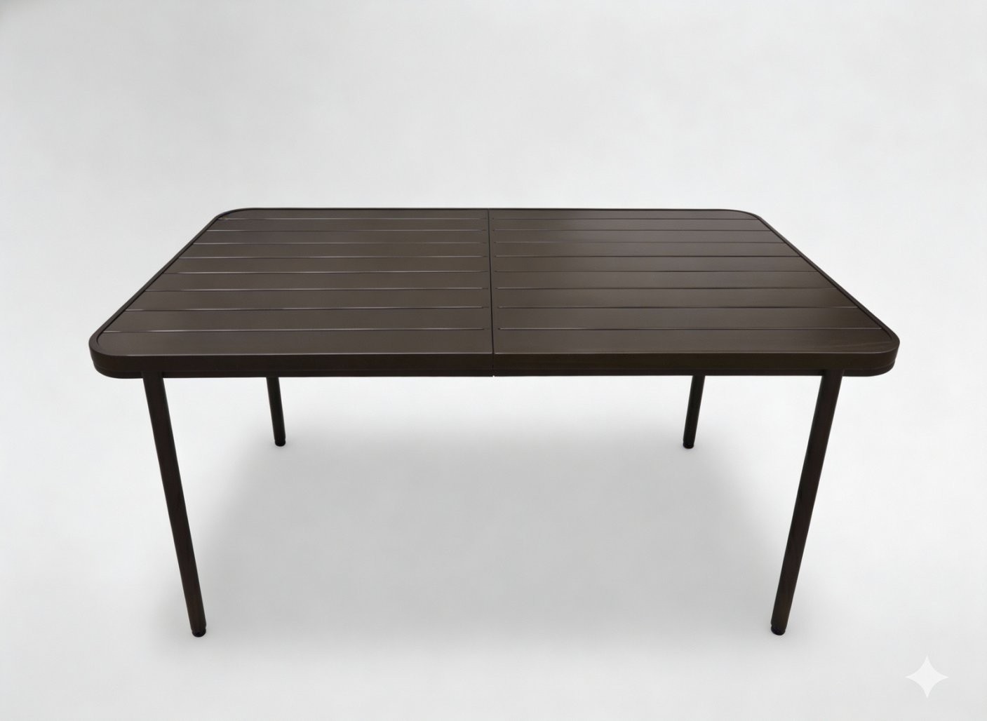 Jekleno ogrodje podpira stabilno izvedbu. Pravokotna površina nudi več prostora za več oseb. Miza je prikladna za vrt, teraso, balkon ili uto.