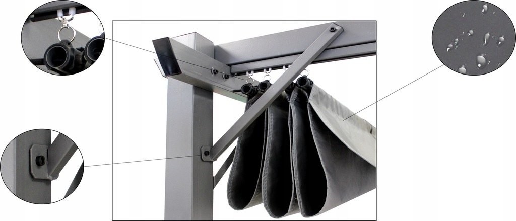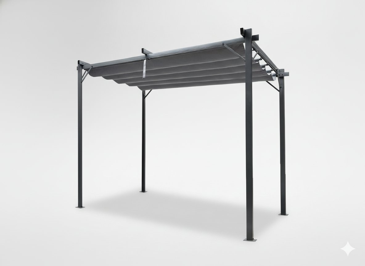 Konstrukcija temelji na prašno barvanih jeklenih profilih, zato pergola deluje stabilno i trpežno. Primerna je za vse, ki želijo ustvariti funkcionalen senčen prostor za sprostitev ili druženje.