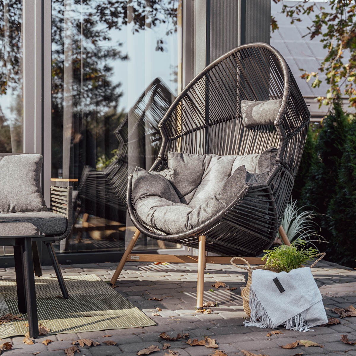 Priuštite si kupnju moderne i estetski sofisticirane stolice za vrt HOLAND. Široko i duboko sjedalo će vas zagrliti i osigurati kvalitetan odmor. Čelični okvir osigurava sigurnost i stabilnost košare. Pogodna je za vrt ili terasu, jer će tamo najbolje doći do izraza.