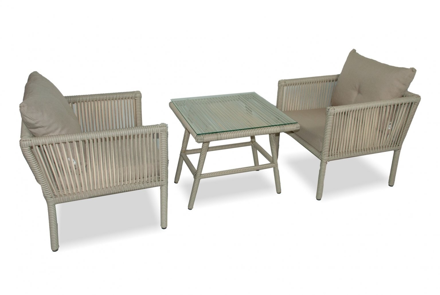 Vrtni set Calista kombinira eleganciju i funkcionalnost, pružajući dodir stila i udobnosti vašem vanjskom prostoru. Ovaj komplet sa staklenim stolom i foteljama u smeđoj, bež ili sivoj boji izrađen je od 100% aluminija i otporan je na promjene boje, što osigurava dug životni vijek i minimalno održavanje. Donosite prednost ugodnog ljetnog sjedenja uz čašu hladnog pića u vašem dvorištu.