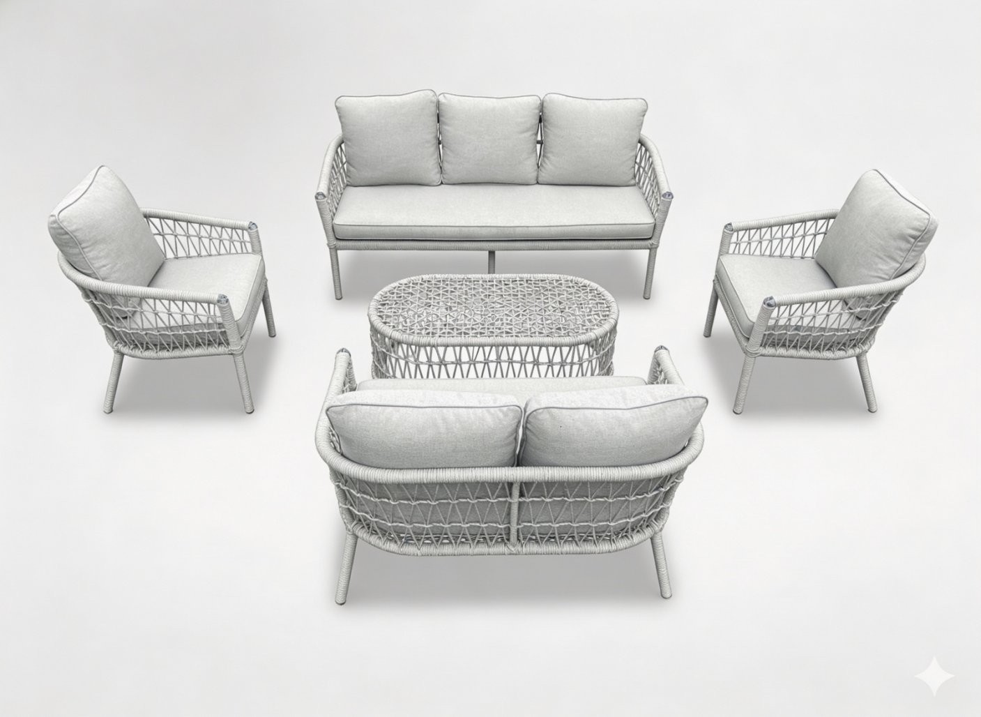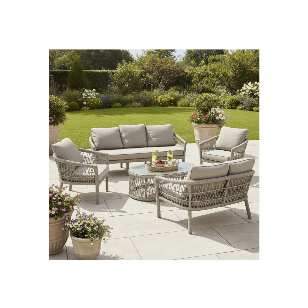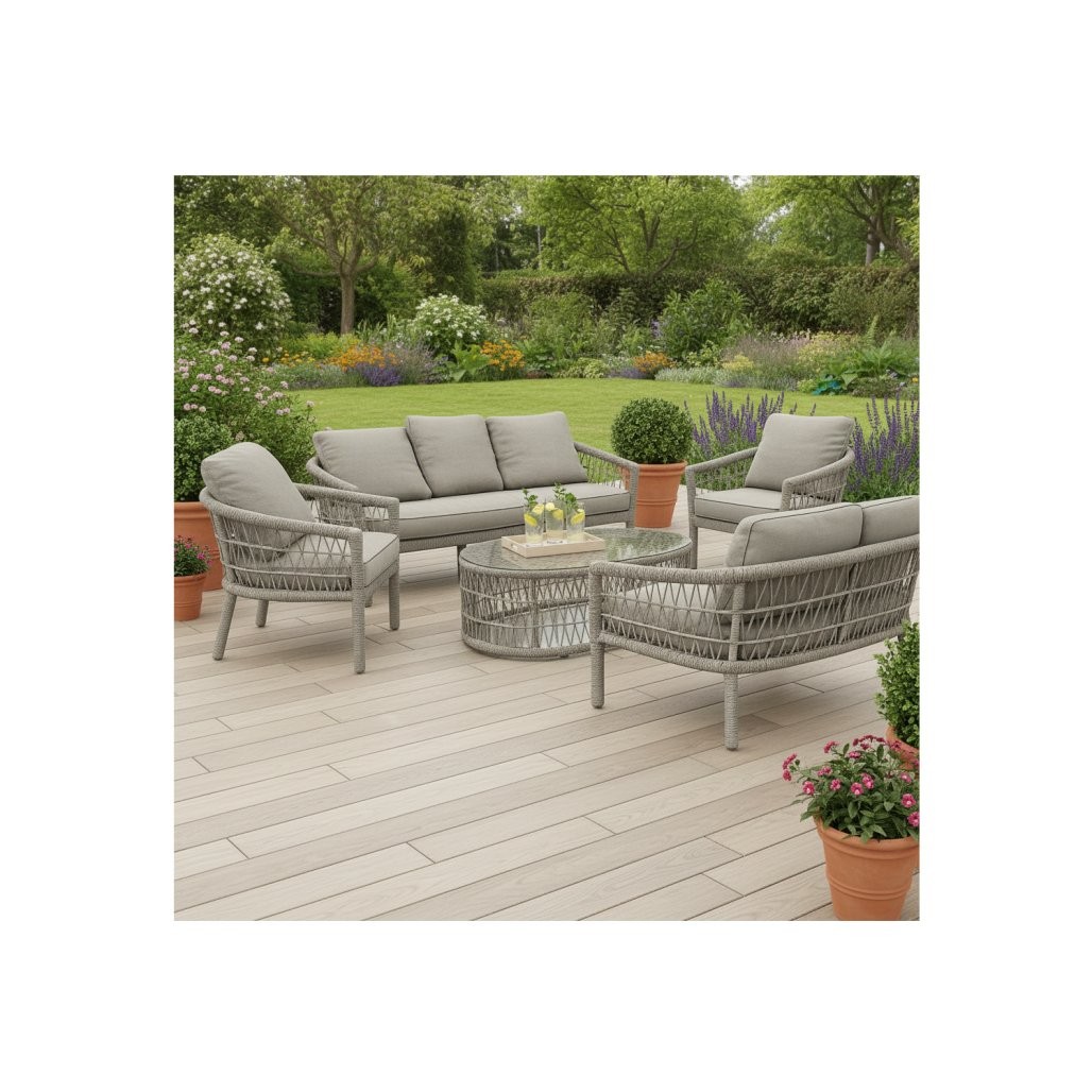 Dobro se uklapa u prostore kao što su terasa, vrt i patio. Među navedenim dimenzijama ističu se 190 × 75 × 75 cm i 131 × 75 × 75 cm. Komplet oziroma izvedba uključuje 2 fotelja, stol. Praktičnost dodatno naglašavaju uključeni jastuci.
