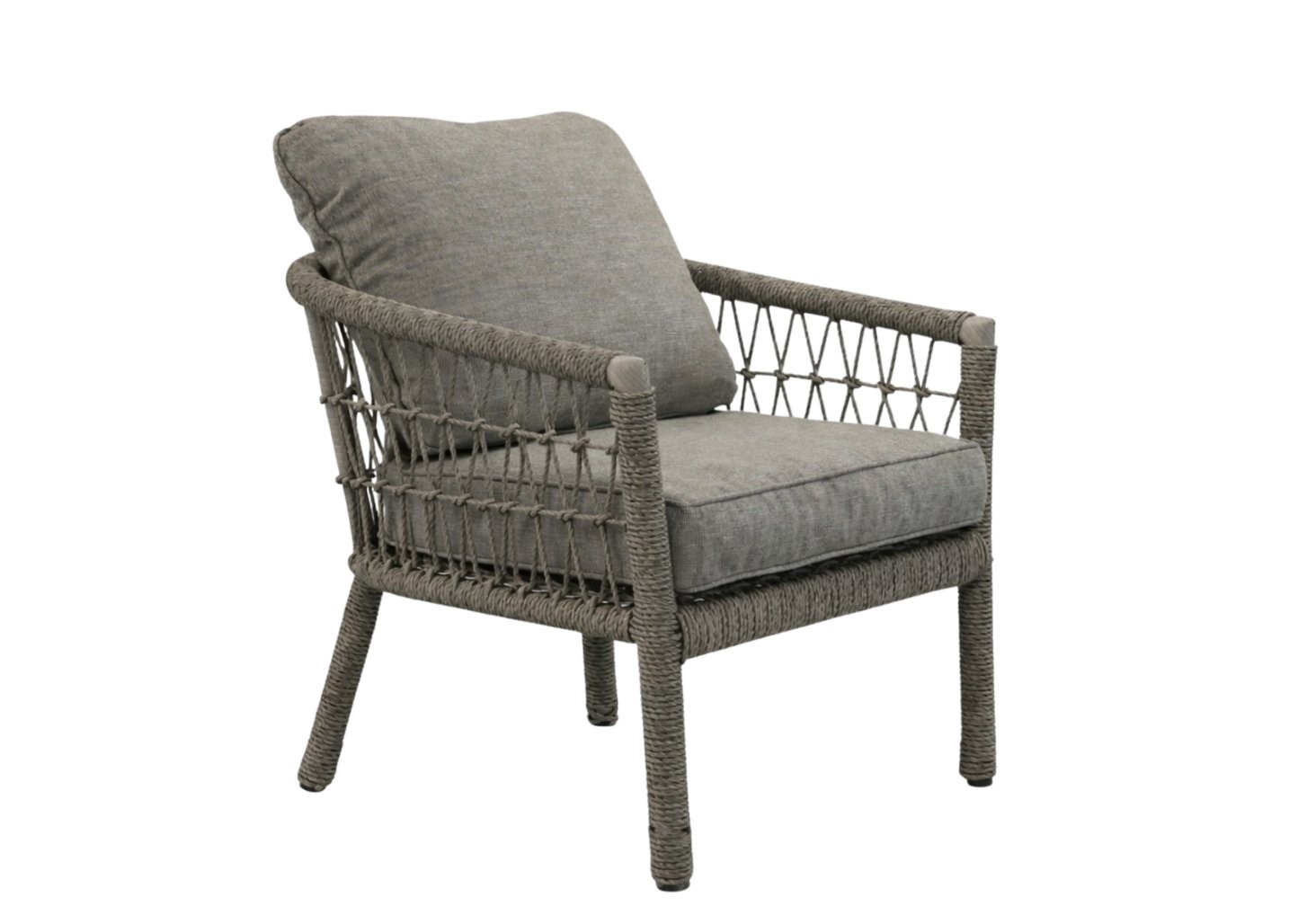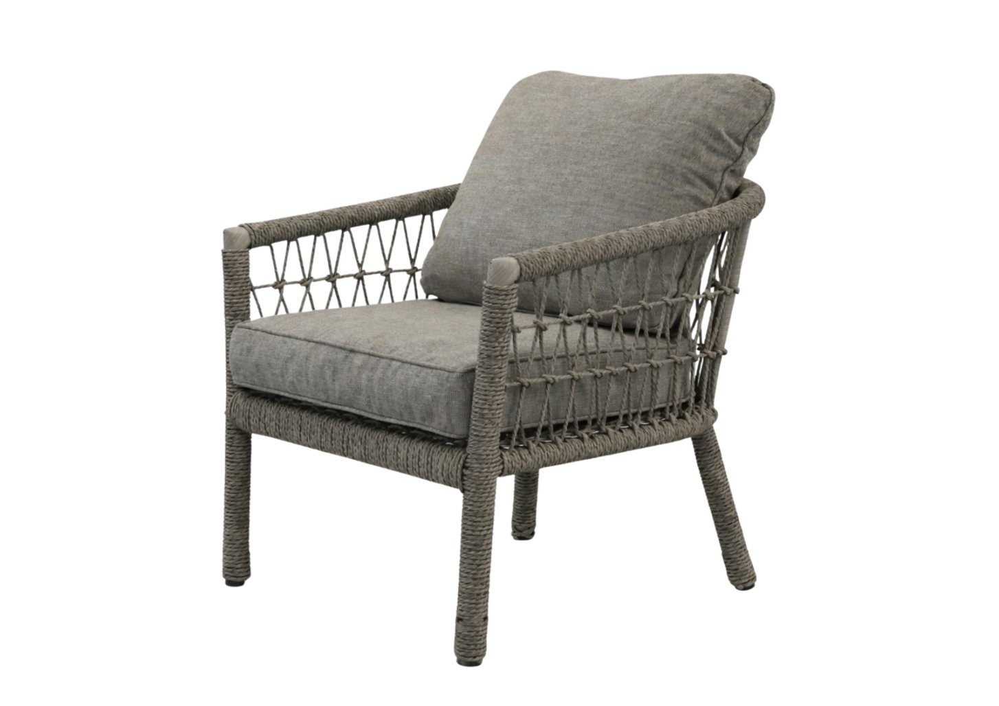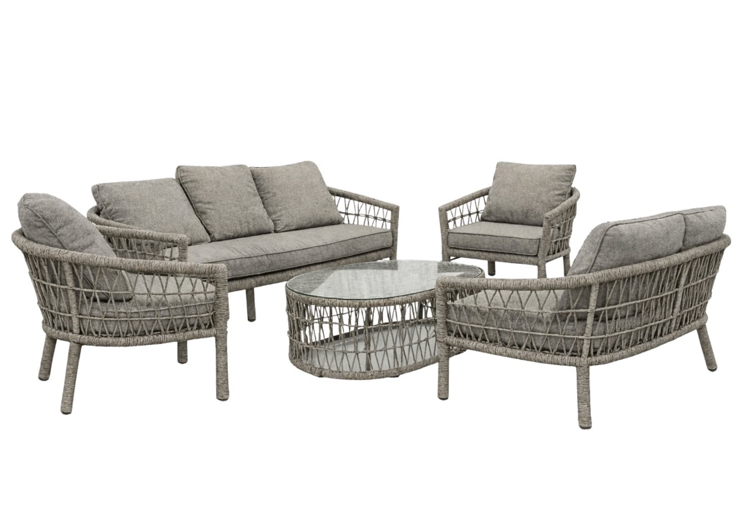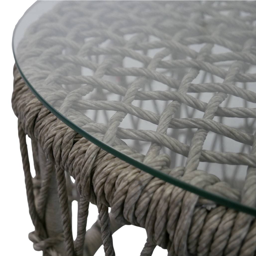 Vrtni set Cesen s 2 kavčema (2 foteljama i stolićem, siva) je pažljivo osmišljen komplet za udobno korištenje i usklađen izgled prostora. Siva boja djeluje smireno i lako se kombinira. Pri izdelavi su uporabljeni materijali, kao su aluminij, ratan, kaljeno staklo i poliester.