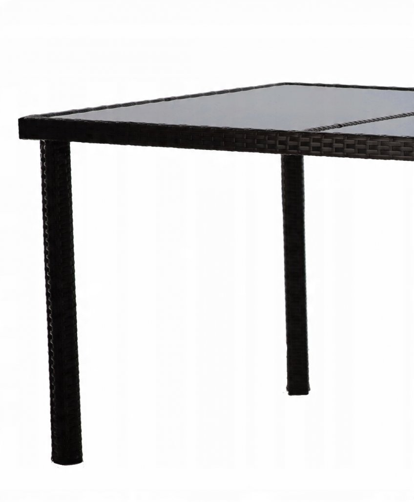 Miza meri 196 x 98 x 73 cm, fotelj pa 60 x 59 x 82,5 cm. Blazine so debele 5 cm, steklo na mizi 5 mm. Komplet je ročno pleten, odporen na umazanijo i opremljen z udobnimi jastukmi. V opisu je poudarjen tudi sodoben dizajn i stabilna konstrukcija.