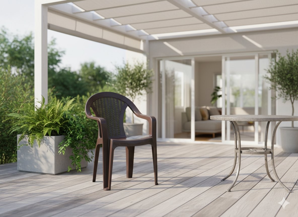 Vrtna stolica Beno (smeđa) pruža udobno mjesto za sjedenje na vrtu, terasi ili balkonu. Boja je smeđa.