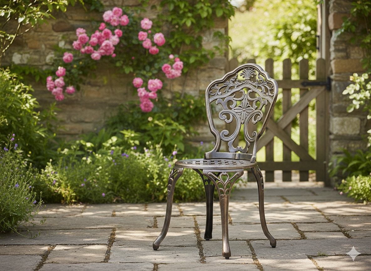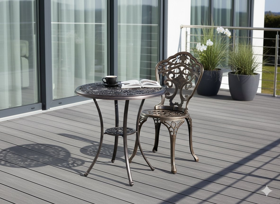 Vrtna stolica Danbur (antik smeđa) donosi promišljeno rješenje za udobno sjedenje u vrtu, na terasi ili balkonu. Izvedba u nijansama smeđa, antik smeđa (crvenkasti bakreni ton) omogućuje jednostavno usklađivanje s različitim vanjskim ambijentima. Materijali, kao što su aluminij, puni odljevci od aluminija, doprinose urednom izgledu i praktičnoj upotrebi.