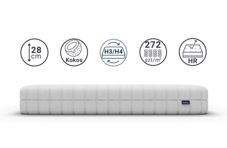 - 7-zonska jezgra od džepićastih opruga veće visine: središnji dio madraca sastoji se od 6 cm visoke opružne jezgre sa 272 opruge/m². To povećava udobnost madraca i njegovu elastičnost. Tako osigurava dodatnu potporu za teže dijelove tijela poput bokova. Struktura madraca omogućuje pravilno poravnanje kralježnice tijekom spavanja.