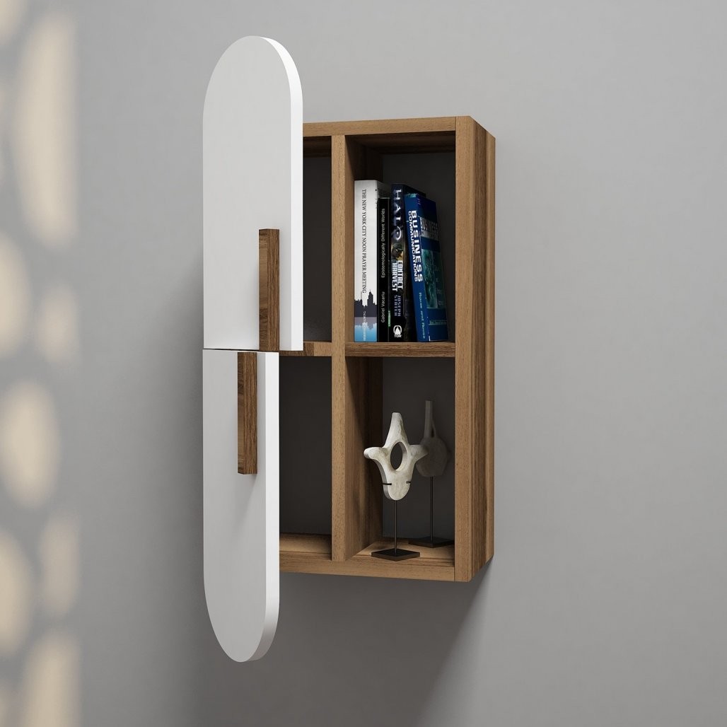 Naša zidna polica pretvara svaki zid u elegantan izložbeni prostor. Njezin suvremeni dizajn savršeno se uklapa u dnevni boravak, spavaću sobu ili ured. Kombinacija boje oraha i bijele stvara upečatljiv kontrast koji obogaćuje svaki stil uređenja.
