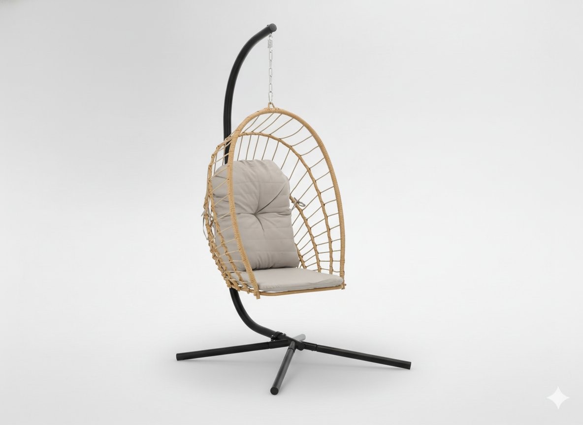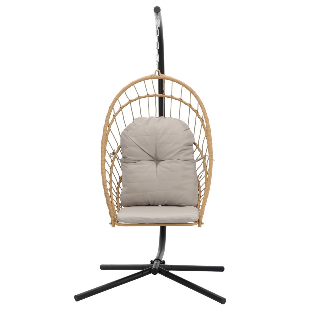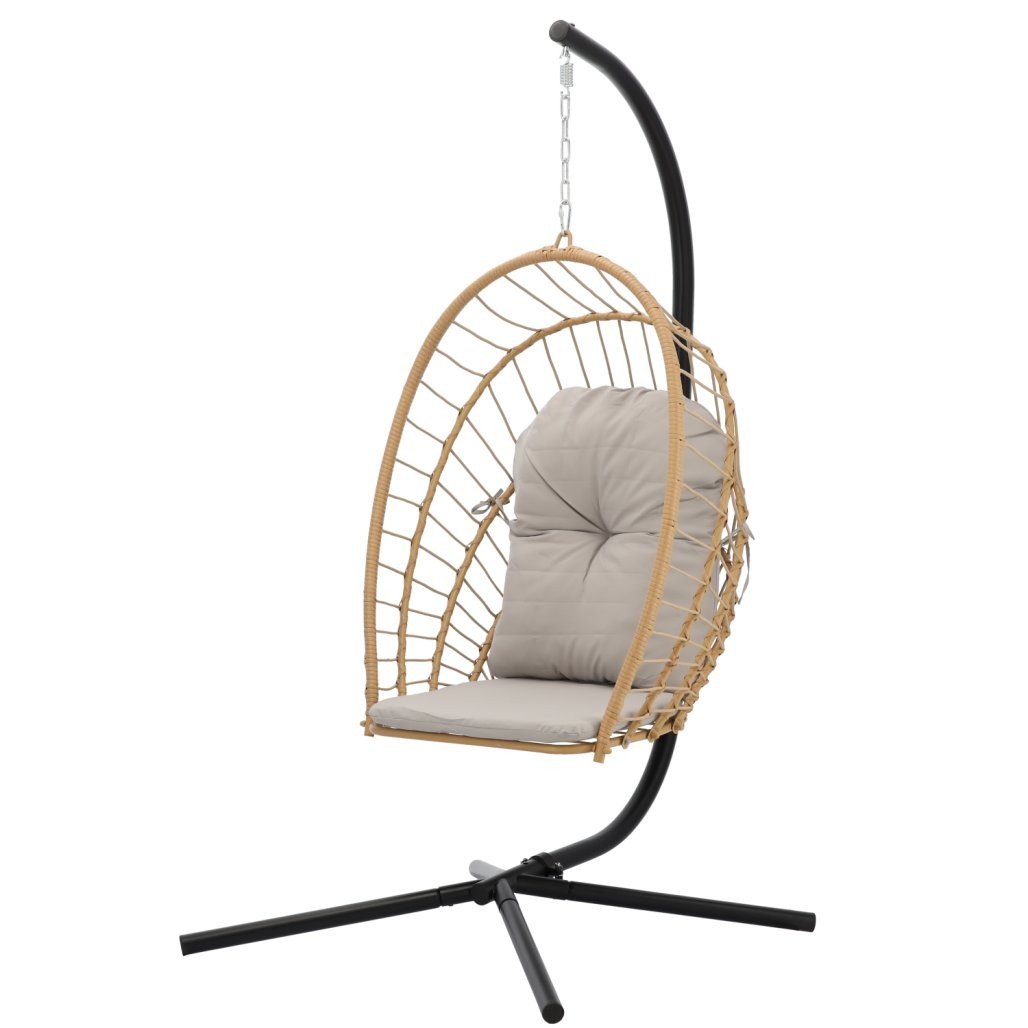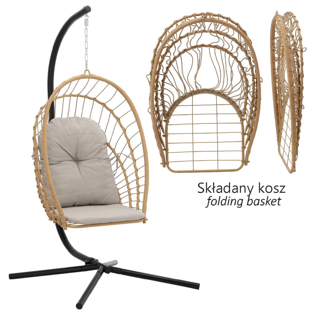 Zložljiv viseči fotelj Eris (smeđa/siva) je udoban komad za opušteno sjedenje i ugodan izgled ambijenta. Kombinacija boja crna, smeđa i siva stvara usklađen izgled proizvoda. Izrada od materijala čelik upotpunjuje izvedbu proizvoda.