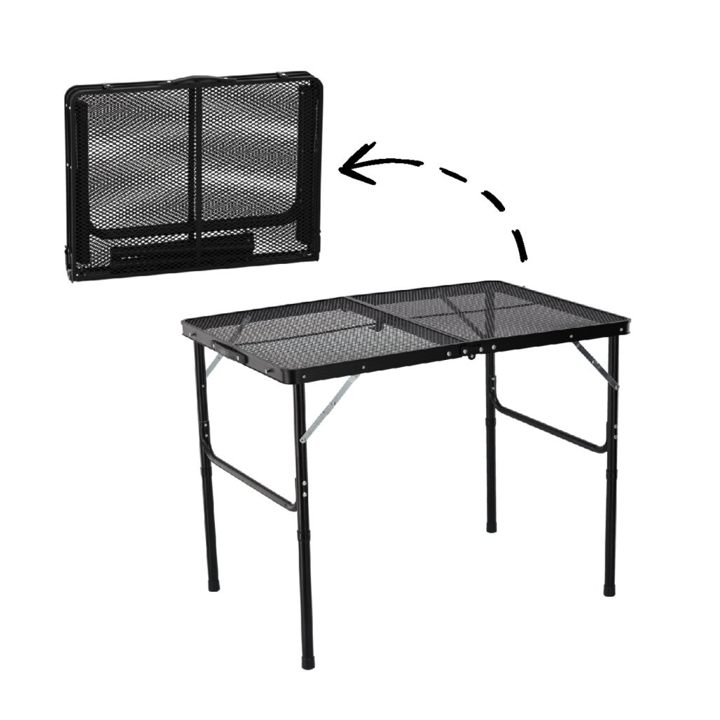 Dobro se obnese u prostorih, kao su balkon, vrt, kampiranje. Među navedenim dimenzijama ističu se 90 × 60 × 40/70 cm i 60 × 40 × 6 cm. Praktičnost dopolnjujejo zložljiva izvedba, nastavljiva višina.